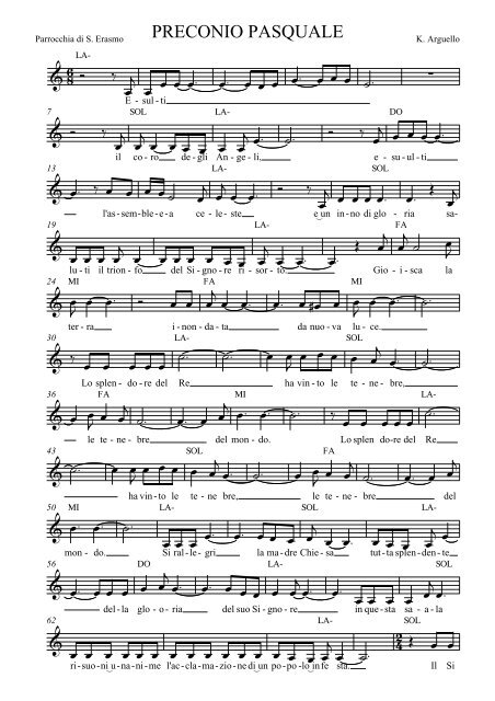 Iil testo italiano dellExultet riportato qui e nelle note che seguono è la versione tratta dal messale romano corrente in lingua italiana 2a edizione del 1983. Testo tratto dal Messale RomanoEsulti il coro degli Angeliesulti lassemblea celesteun inno di gloria saluti il trionfo del Signore risortoGioisca la terr. Il Preconio Pasquale Conforme Allinsigne Frammento Del Codice Barberiniano Dellautore Del Più Antico Preconio Pasquale 2 Dissertazioni Italian. Preconio Pasquale pdf Ufficio liturgico nazionale.